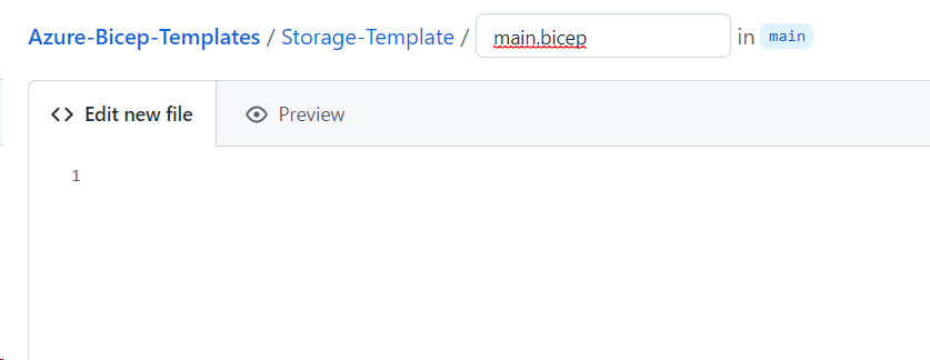 Within the name file type Storage-Template/main.bicep - this will create a folder called Storage-Template and then the file main.bicep.