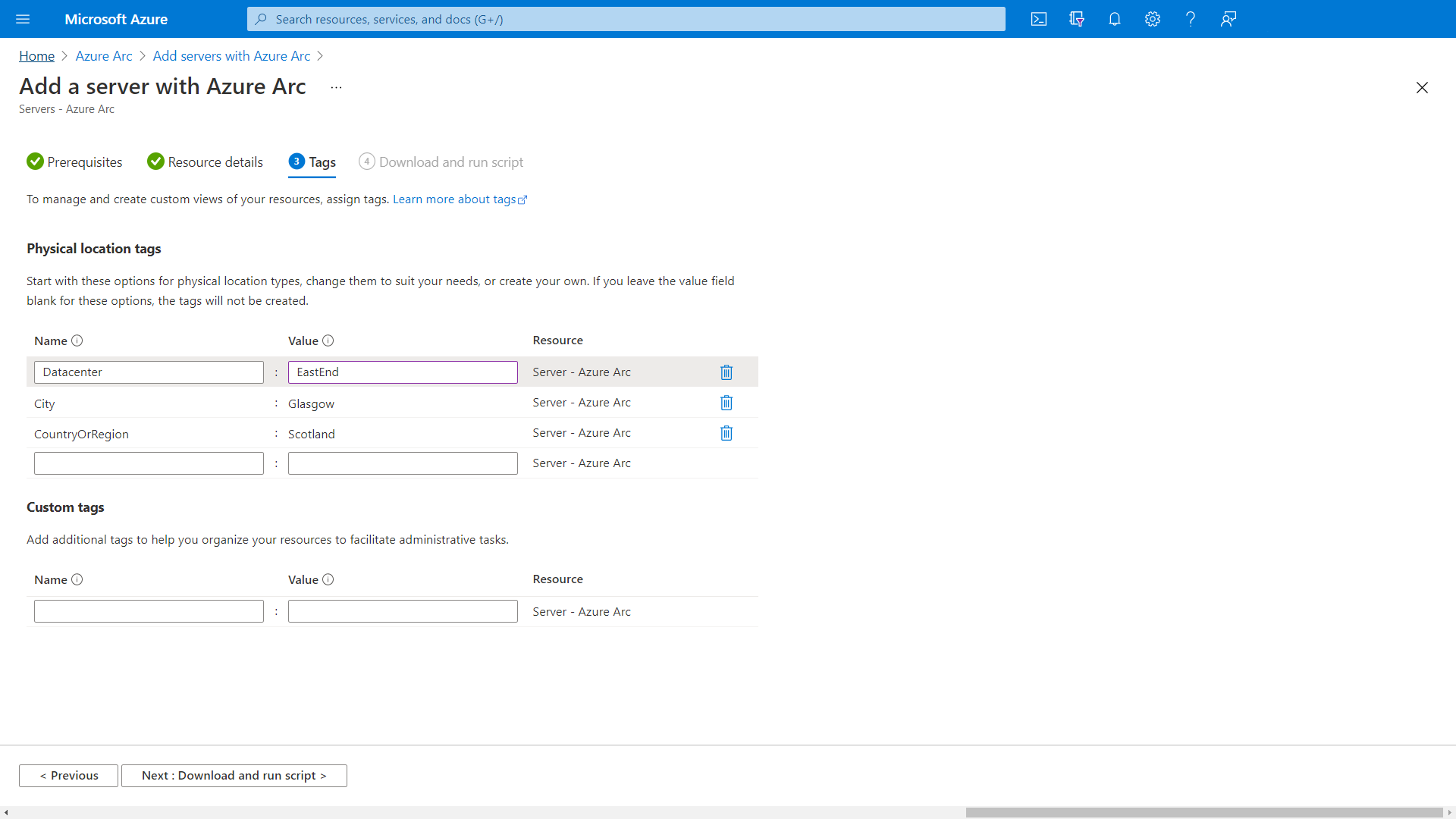 The next screen will be regarding Tags. you should look to try and utilise Tags within your Azure environment if you aren't already, they can be a great way of finding and identifying servers.