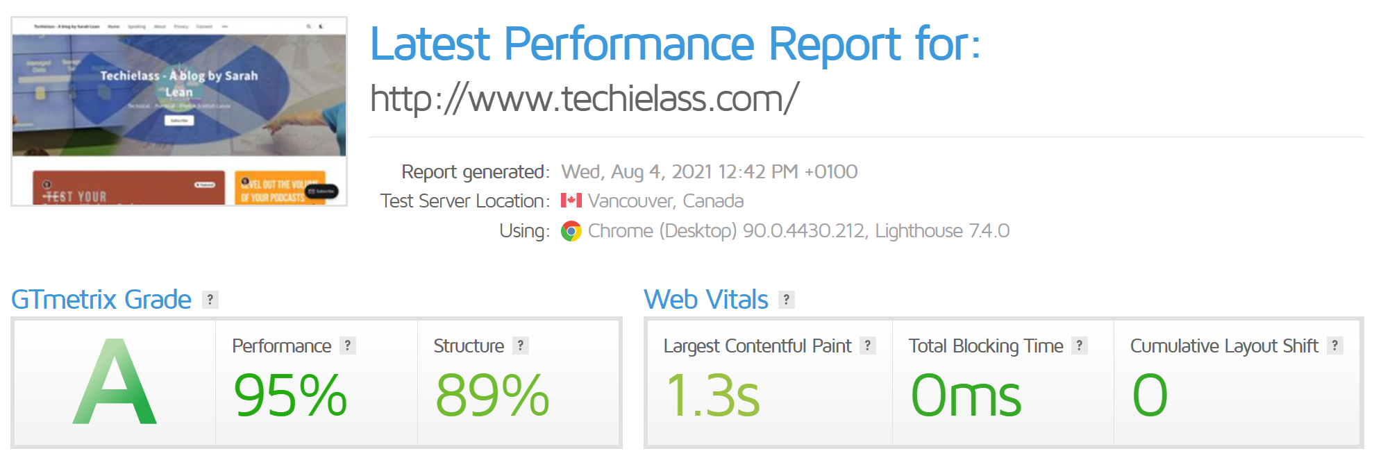 GTMetrix have slightly changed their reporting, but you can see the latest report is pretty good, with no real issues there.